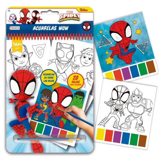 ACUARELAS WOW SPIDEY. 20 HOJAS, ACUARELA EN TODAS LAS HOJAS Y PINCEL.