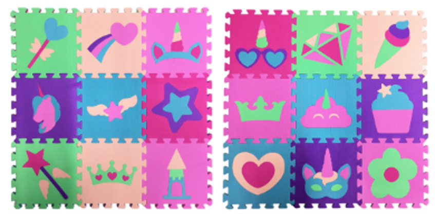 ALFOMBRA PISO DE GOMA EVA BABYGUS. UNICORNIOS Y FANTASIA, 36 PIEZAS. MEDIDA 40x40CM APROX.