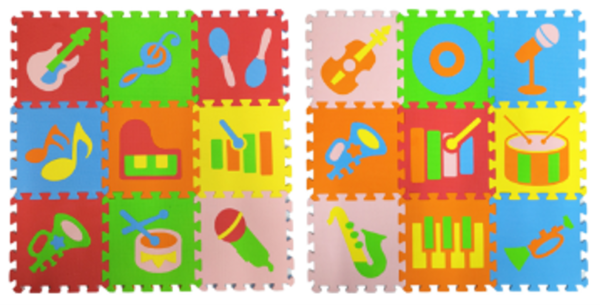 ALFOMBRA PISO DE GOMA EVA BABYGUS. INSTRUMENTOS MUSICALES, 36 PIEZAS. MEDIDA 40x40CM APROX.