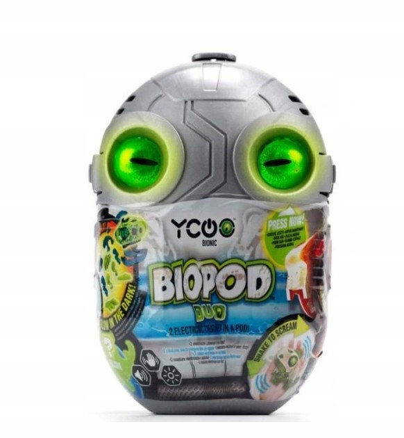 BIOPOD DUO 4 MODELOS DIFERENTES. PAQUETE DOBLE DE CRIATURAS EXCLUSIVAS CON OJOS LED DE 2 COLORES. CREA TUS PROPIAS CRIATURAS ELECTRONICOS CON LAS 10-12 PIEZAS DISTINTAS INCLUIDAS. EFECTOS DE SONIDO Y MUEVE LA MANDIBULA. AGITALO PARA QUE GRITE.