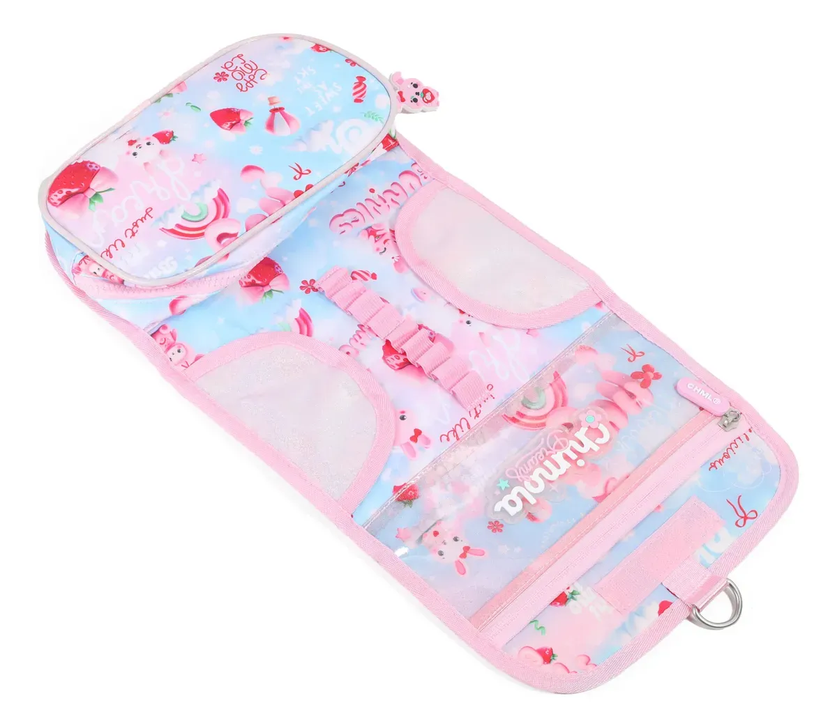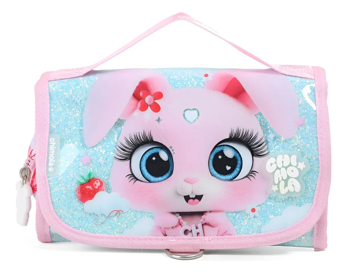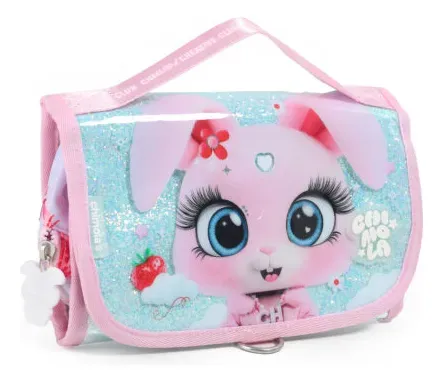 CARTUCHERA PERSONAJE BUNNY. ASA SUPERIOR PARA COLGAR O TRANSPORTAR FACILMENTE. BOLSILLO CON CIERRE, ELASTICO PORTALAPICES, INTERIORES DESPLEGABLES CON ESTAMPAS TEMATICAS. AMPLIO COMPARTIMIENTO.