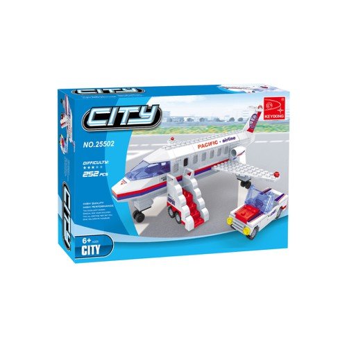CITY AVION BLANCO CON ACCESORIOS. PARA ARMAR, INCLUYE 252 PIEZAS.