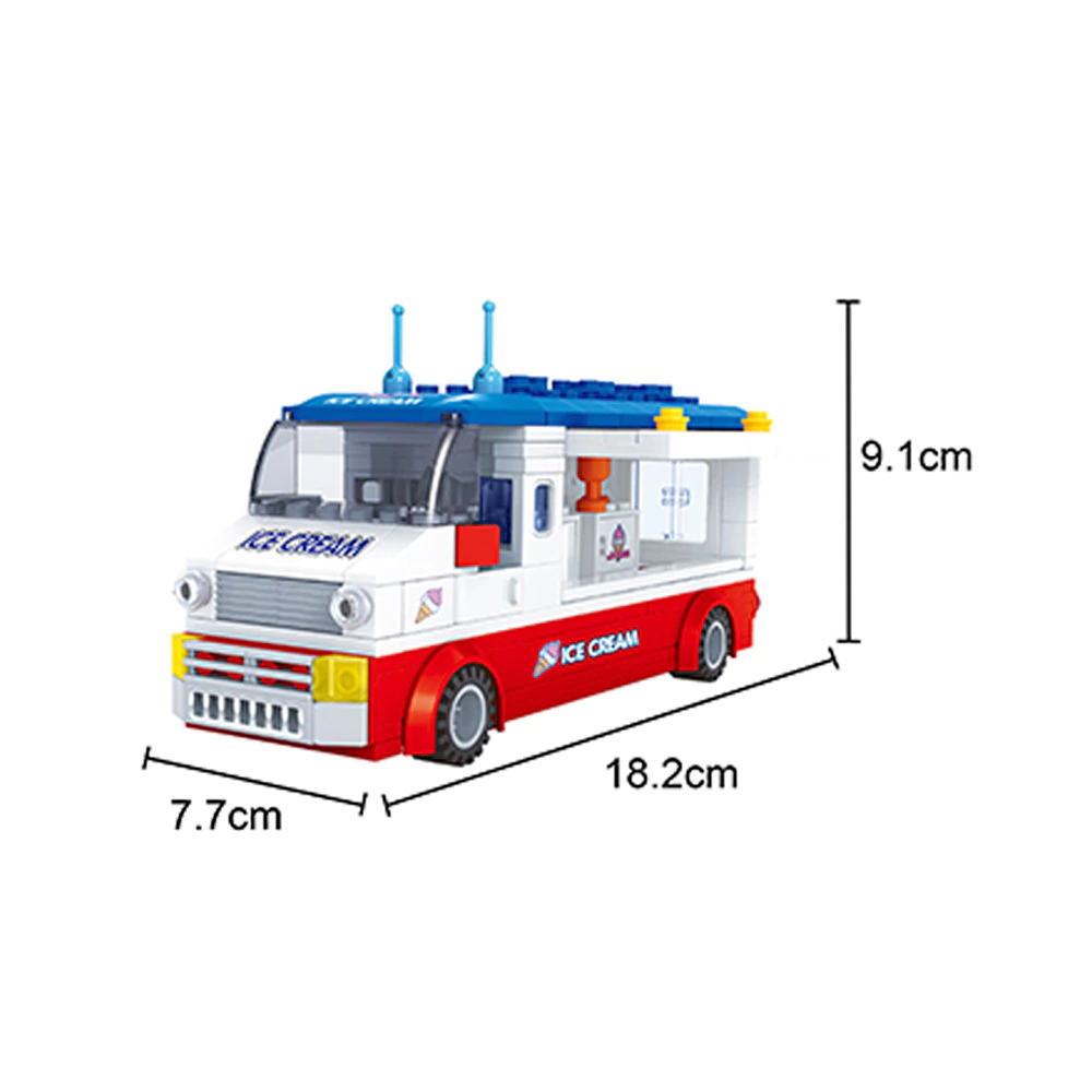 CITY CAR ICE CREAM. BLOQUES PARA ARMAR, 259 PIEZAS. RECOMENDADO PARA + 3 AÑOS.