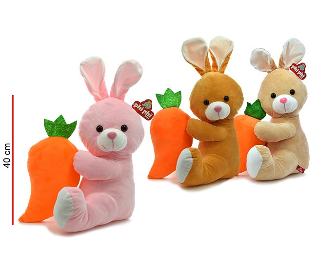 CONEJO CON ZANAHORIA 3 COLORES, MEDIDA 40CM APROX.