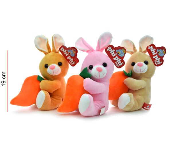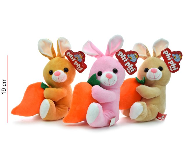 CONEJO CON ZANAHORIA 3 COLORES, MEDIDA 19CM APROX.