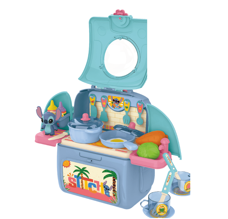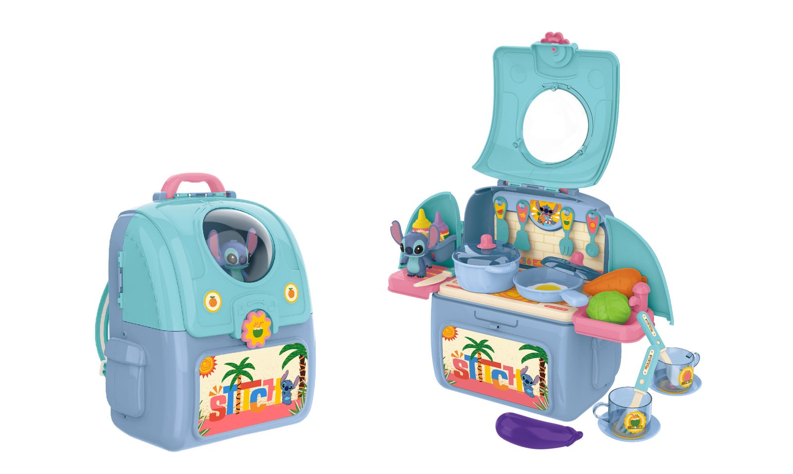 FASHION BAG LOTSO STITCH CON VISOR CON ACCESORIOS, SIEMPRE LISTA CON EL SET DE COCINA, CON OLLAS, ESPATULAS, CONITOS Y MUCHO MAS PARA DIVERTIRTE JUGANDO VAYAS DONDE VAYAS.