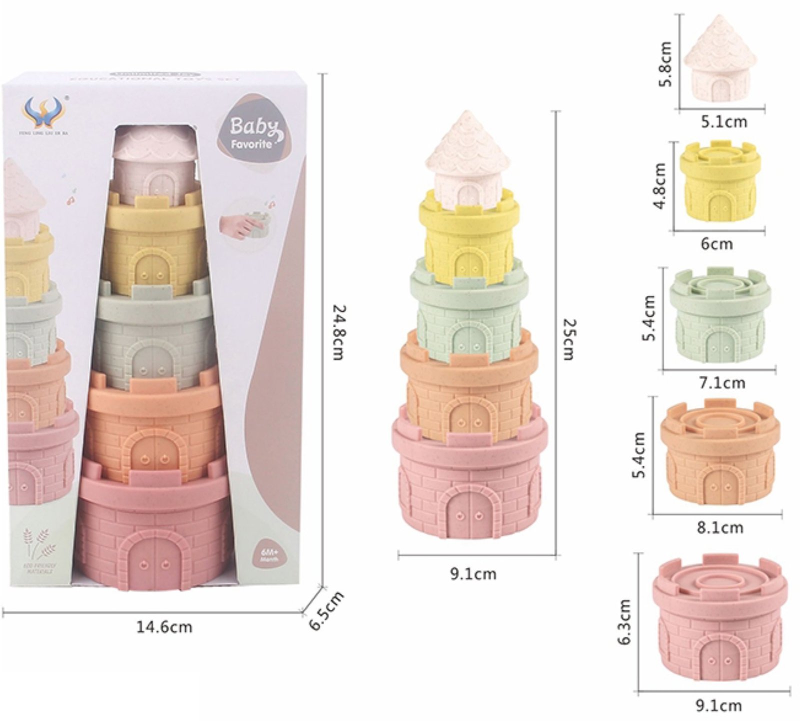 JUGUETES DIDACTICO TORRE DEL CASTILLO APILABLE. 5 PIEZAS, MEDIDA 14,6×6,5×24,8CM APROX.