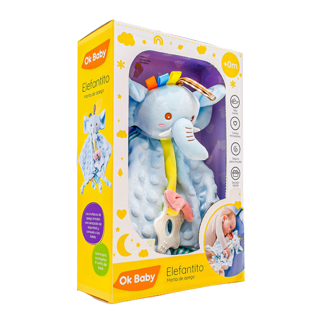 MANTA DE APEGO SENSORIAL ELEFANTE. TELA SUAVE, CALMA EMOCIONES, SECADO RAPIDO Y CON MORDILLO.