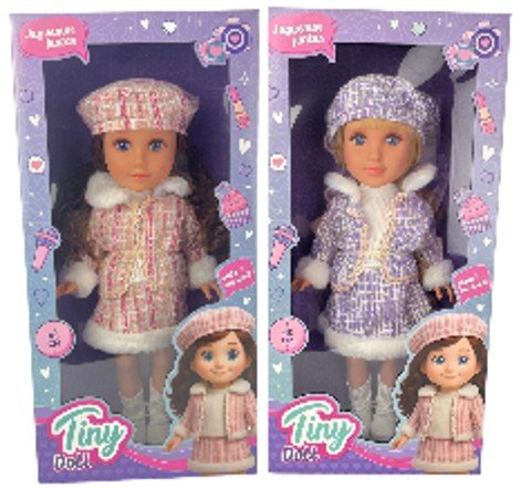 MUÑECA TINY DOLL CON TRAJE. PARA +3 AÑOS, MEDIDA 50x25x12CM APROX. 45CM DE LA MUÑECA.