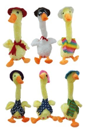 PATO BAILARIN LUZ Y SONIDO CARGA USB. VIENE EN CAJA, VARIOS MODELOS. MEDIDA 30CM APROX.