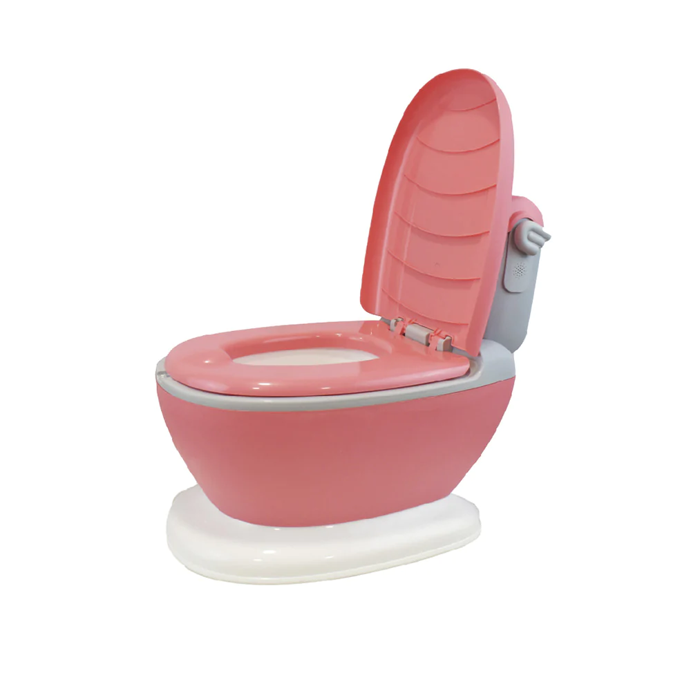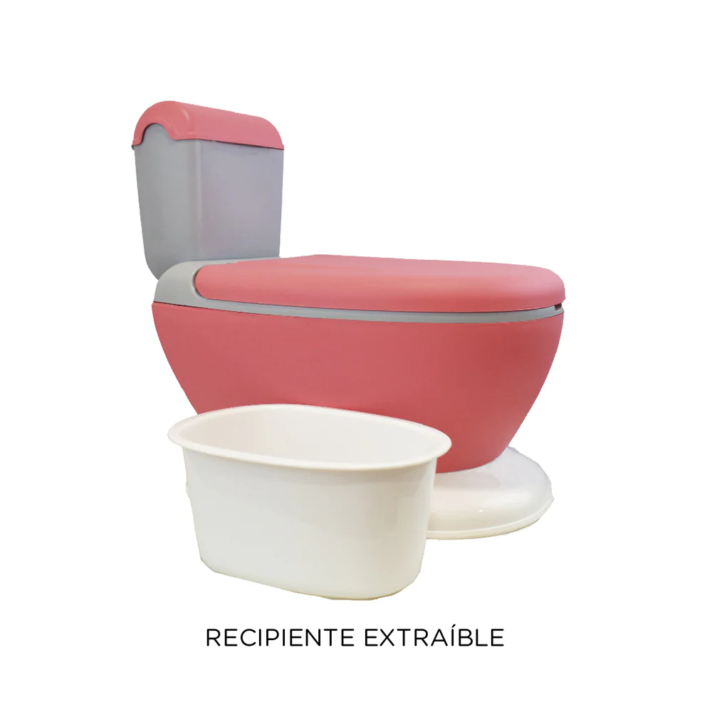 PELELA INODORO CON SONIDO ROSA, CON BASE ANTIDESLIZANTE, TAPA REFORZADA, RECIPIENTE EXTRAIBLE EXTRAIBLE Y TOPE ANTISALPICADURAS. TIRA LA CADENA CON SONIDO REAL.