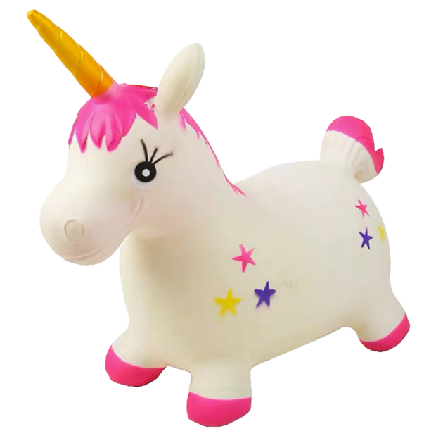 SALTARIN INFLABLE UNICORNIO. 3 COLORES, 1300 GRS. MEDIDA 75x65x50CM APROX.