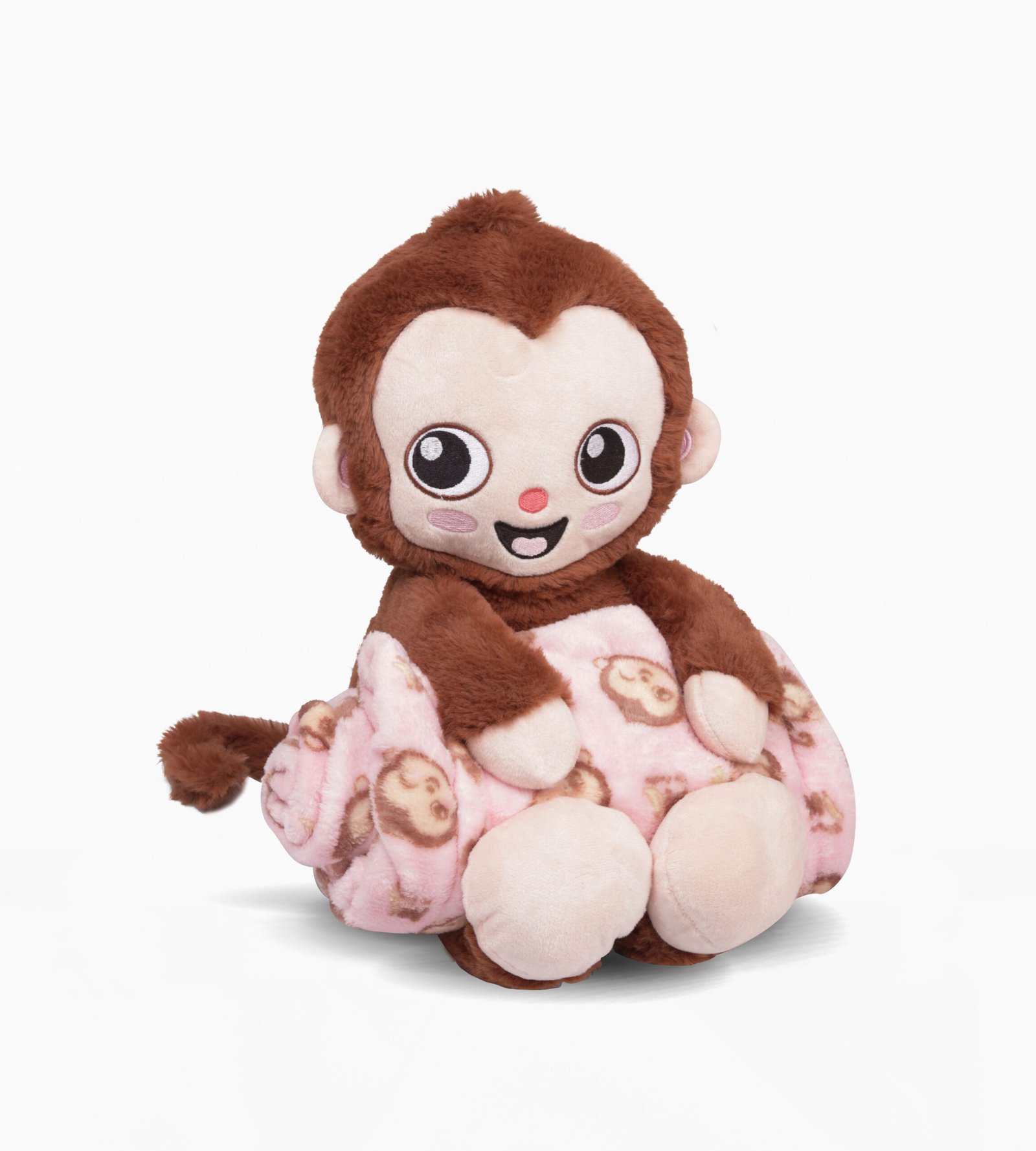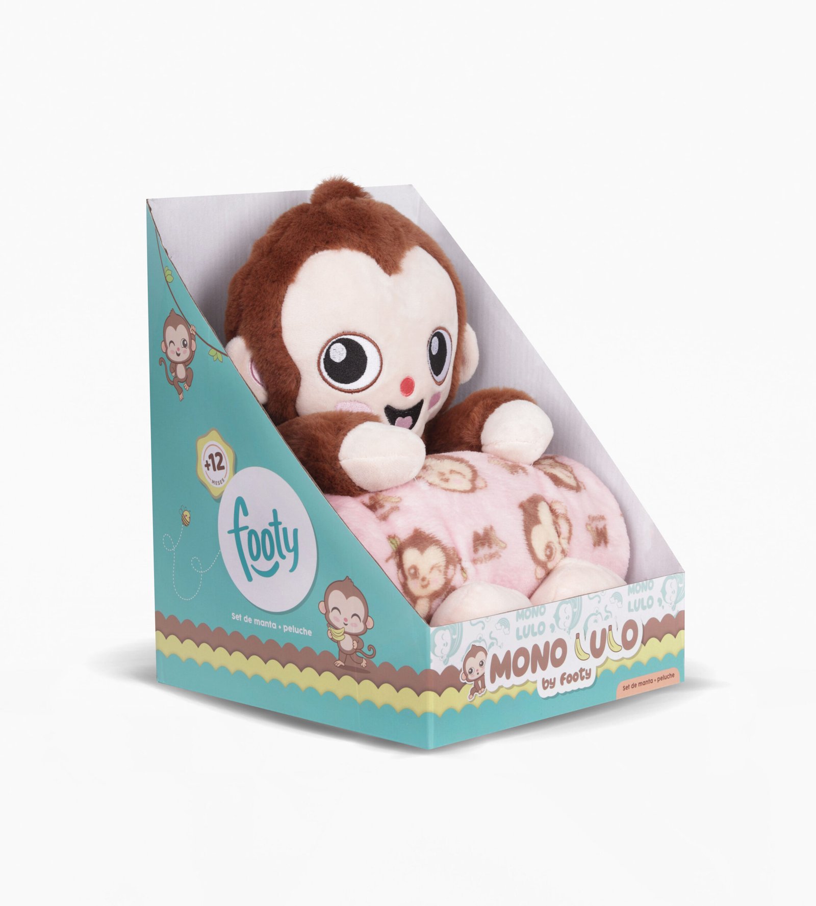 SET PELUCHE + MANTA MONO LULO, CON MANTA ESTAMPADA DEL PERSONAJE. MATERIAL 100% POLIESTER, 2 MODELOS. MEDIDA DEL PELUCHE 37x22CM, MEDIDA DE LA MANTA 100x75CM APROX. VIENE EN CAJA EXHIBICION.