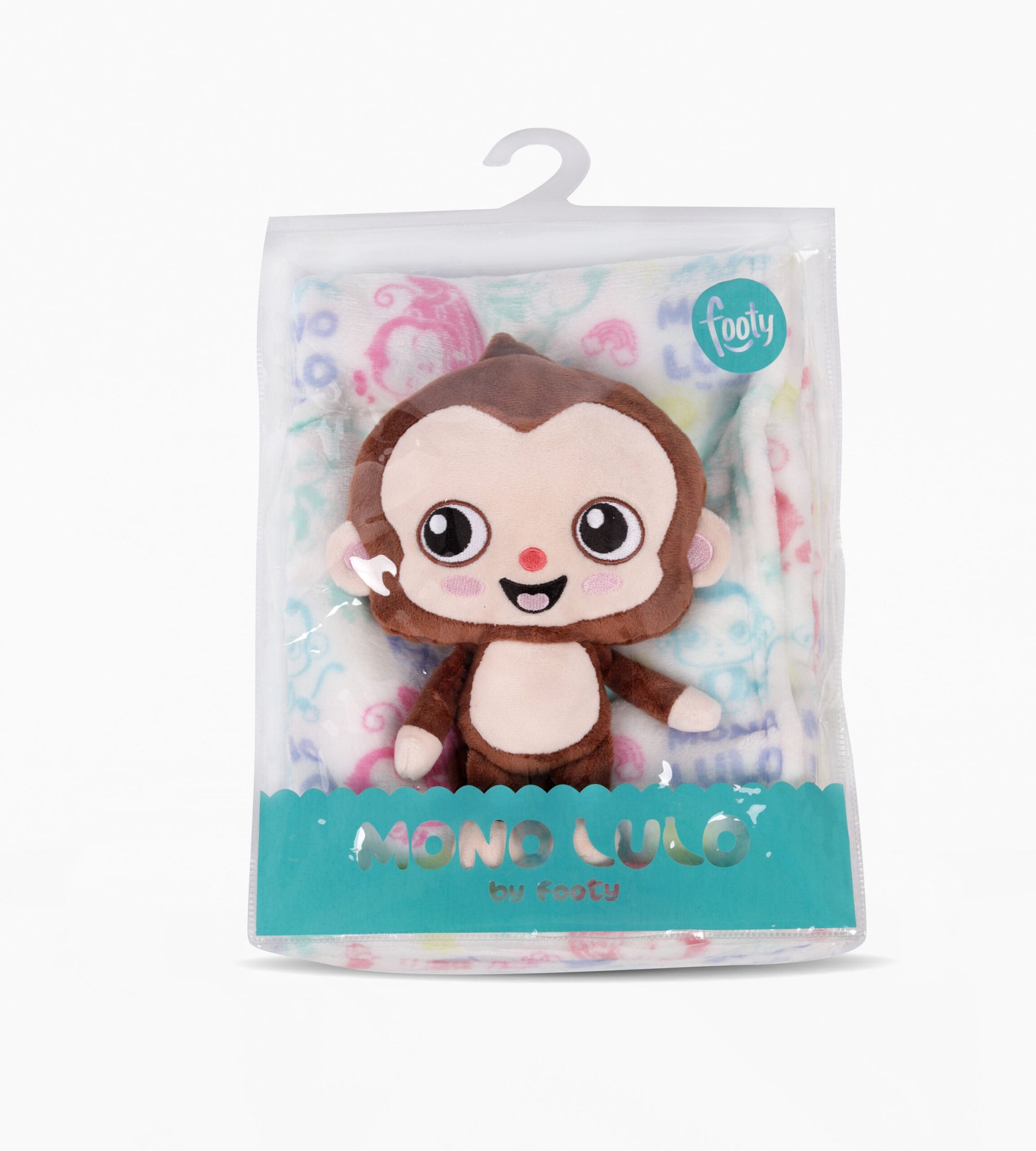 SET PELUCHE + MANTA MONO LULO, CON MANTA ESTAMPADA DEL PERSONAJE. MATERIAL 100% POLIESTER, 3 MODELOS. MEDIDA DEL PELUCHE 24x17CM, MEDIDA DE LA MANTA 100x75CM APROX. VIENE EN BOLSITA.