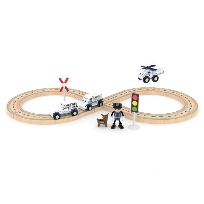 SET TREN POLICIA JUEGO DE MADERA.