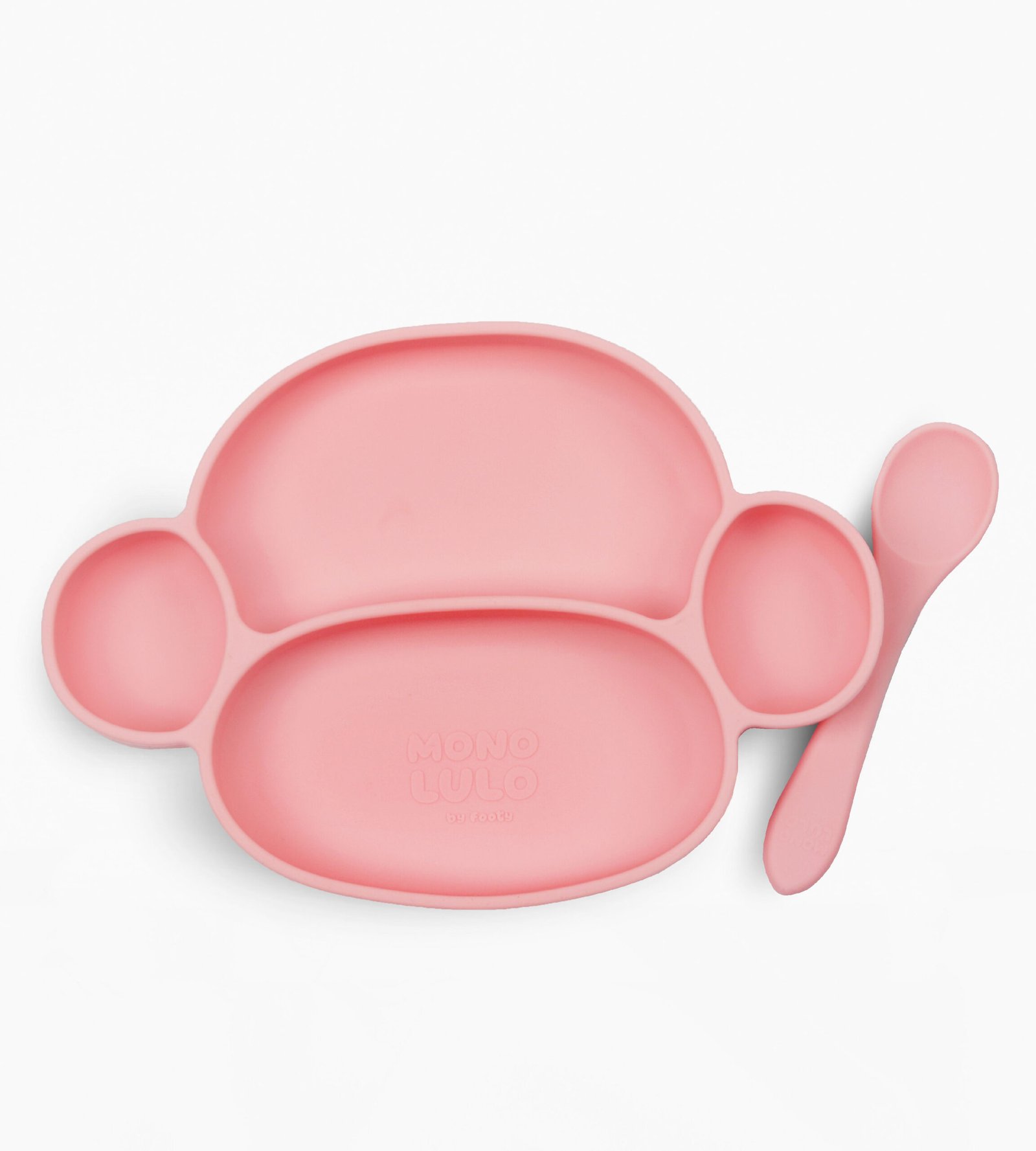 SET x2 PIEZAS MONO LULO. MATERIAL DE SILICONA NO TOXICO, CON VENTOSA EN LA PARTE INFERIOR PARA QUE NO SE MUEVA. 100% LIBRE DE BPA, BPS, PVC Y FTALATOS. APTO PARA LAVAJILLAS Y MICROONDAS. PLATO CON 4 COMPARTIMIENTOS CON LOGO EN RELIEVE Y CUCHARA DE SILICONA. MEDIDA DEL PLATO 15,5x22CM APROX. 2 MODELOS.