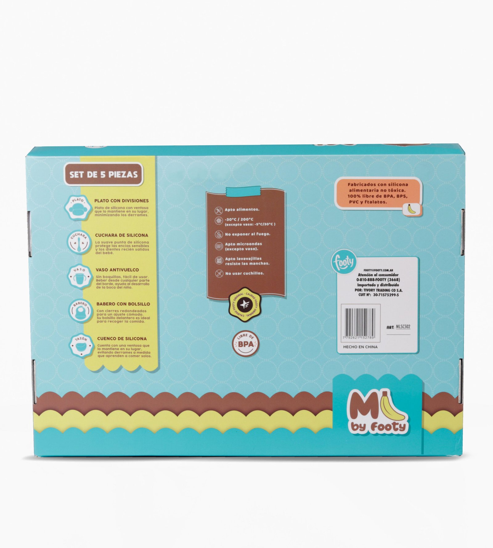 SET x5 PIEZAS MONO LULO. MATERIAL DE SILICONA NO TOXICO, CON VENTOSA EN LA PARTE INFERIOR PARA QUE NO SE MUEVA. 100% LIBRE DE BPA, BPS, PVC Y FTALATOS. APTO PARA LAVAJILLAS Y MICROONDAS. EL SET INCLUYE BABERO CON BOLSILLO DELANTERO PARA RECOGER COMIDA Y AJUSTE CON BOTONES,PLATO CON 4 COMPARTIMIENTOS CON LOGO EN RELIEVE Y CUCHARA, BOWL CON VENTOSA PARA QUE SE QUEDE EN SU LUGAR Y VASO CON TAPA DE SILICONA 360° CON MANIJA. 2 MODELOS.