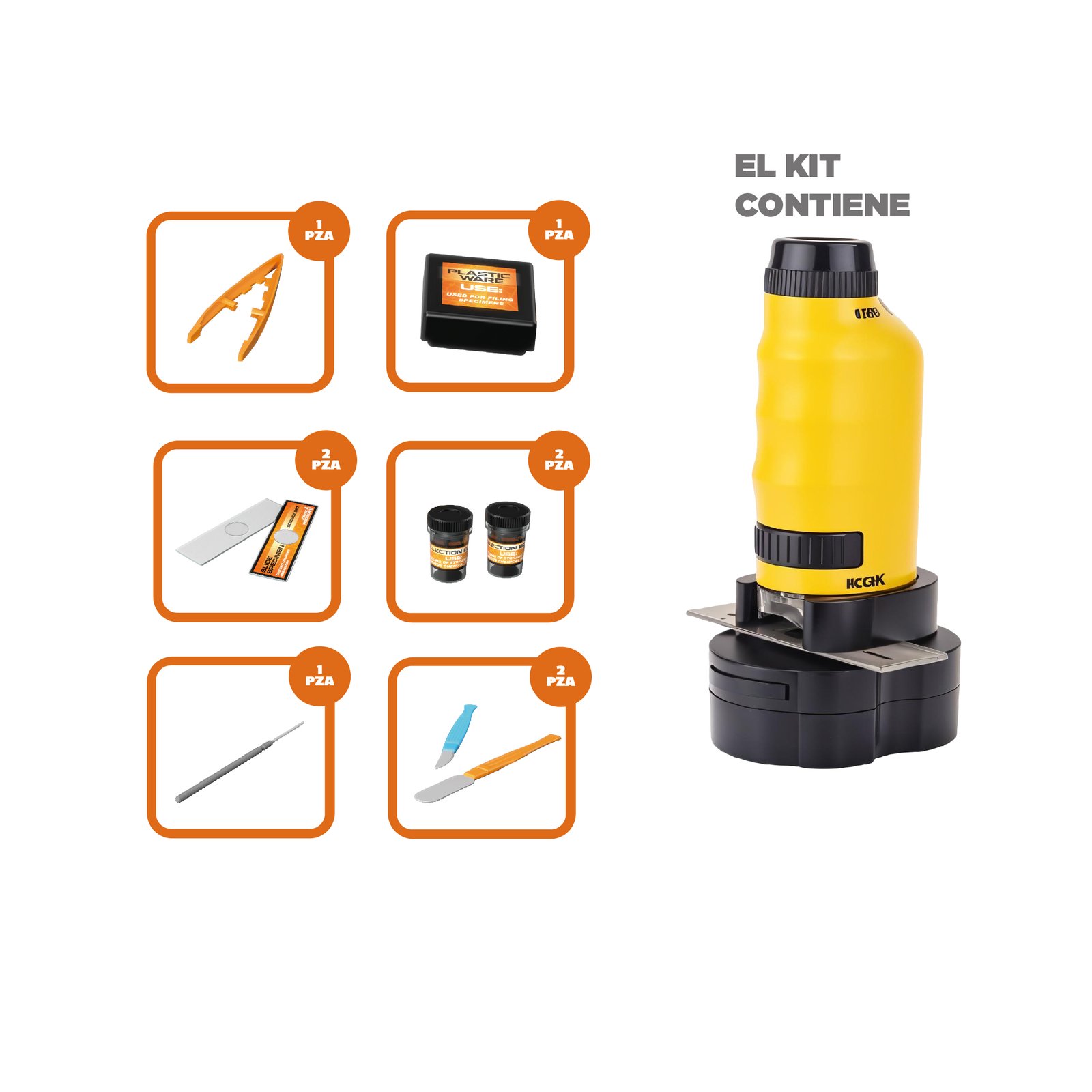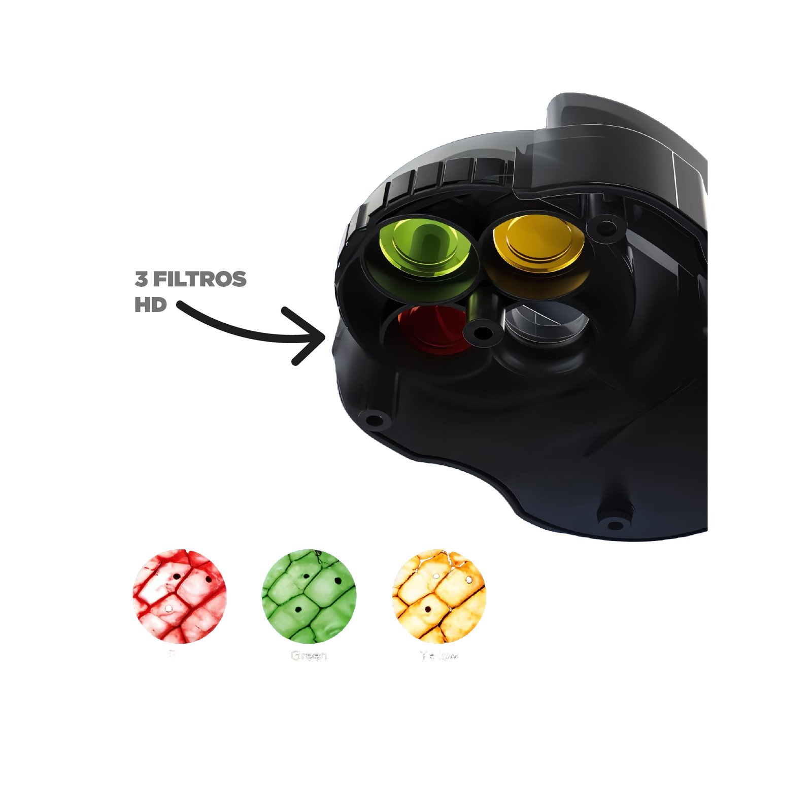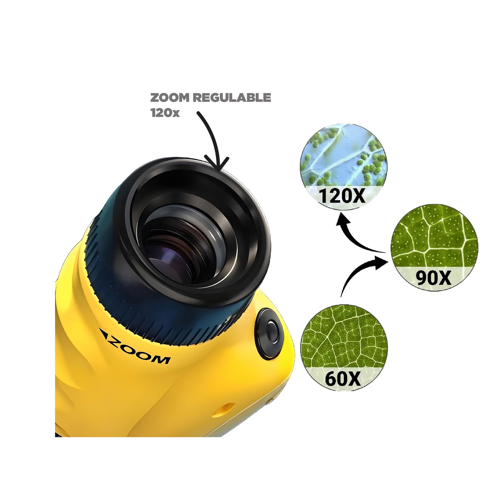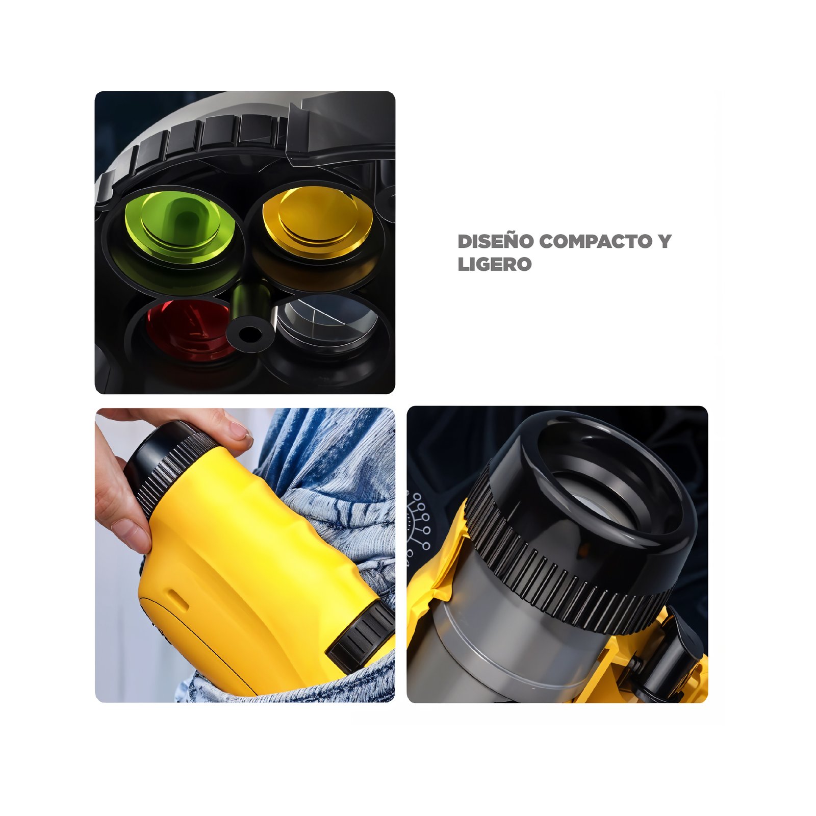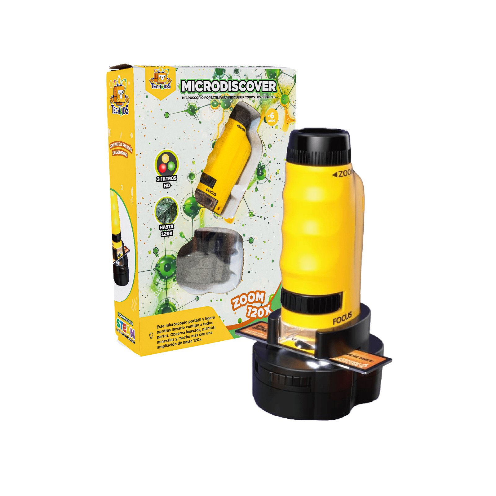 TECHKIDS MICRO DISCOVER CON MUCHOS ACCESORIOS. INTERRUPTOR DE LUZ, ANILLO PARA AJUSTAR EL FOCO, BASE DESMONTABLE, ZOOM REGULABLE, 3 FILTROS HD.