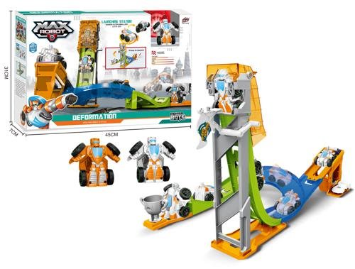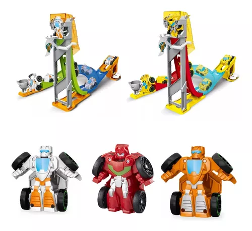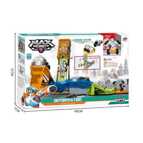 TRANSFORMABLE BASICO + PISTA CENTRAL. AUTO TRANSFORMABLE 3 MODELOS. MEDIDA 45x31x7CM APROX. VIENE EN CAJA.